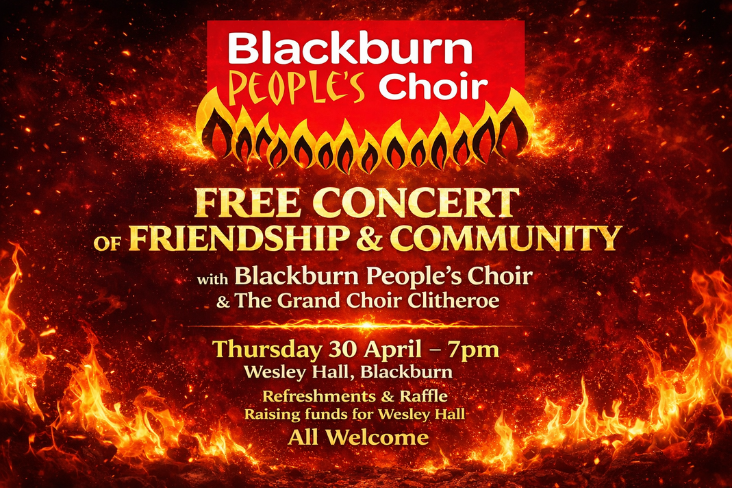Book a free ticket by emailing enquiries@blackburnpeopleschoir.org or just turn up.